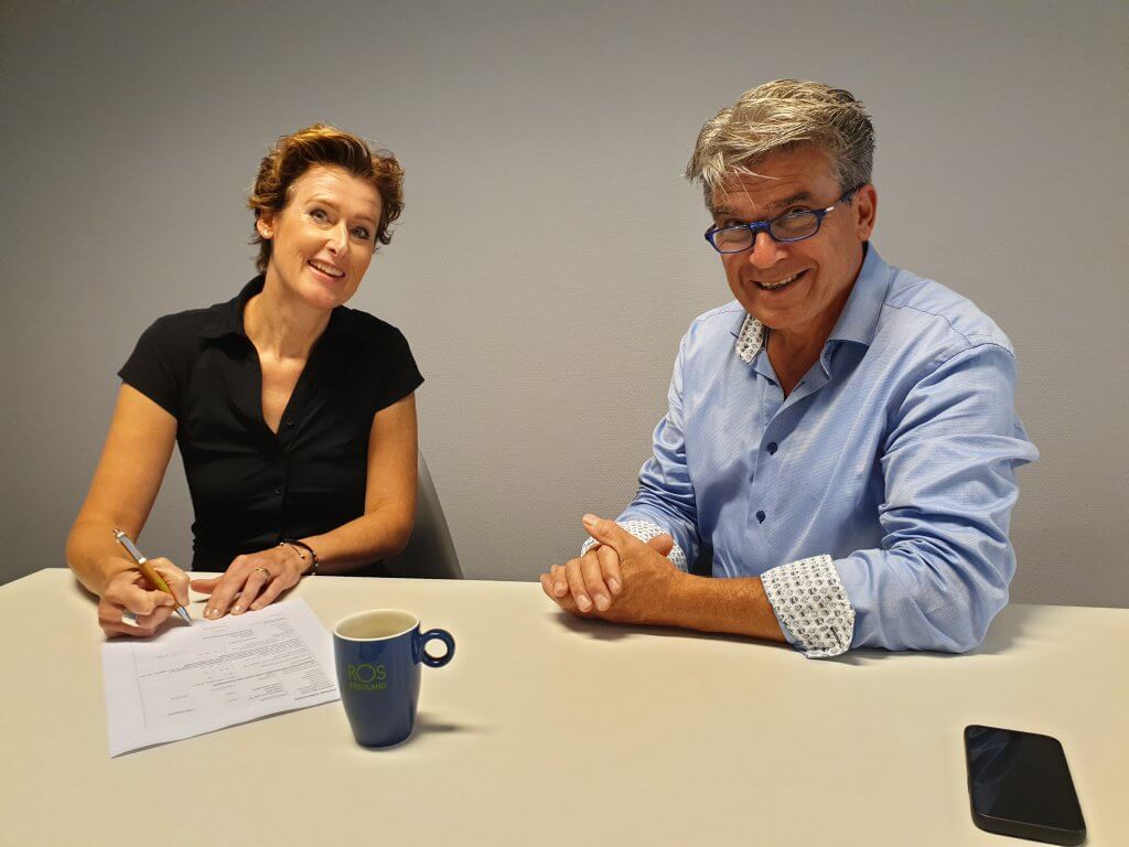 Sandra Scherstra-Cleerdin (directeur – bestuurder van ROS Friesland) en Chris Borsten (Coördinator bij PGO Netwerk Noord) zetten vandaag een handtekening onder hun samenwerking op het gebied van Positieve Gezondheid.