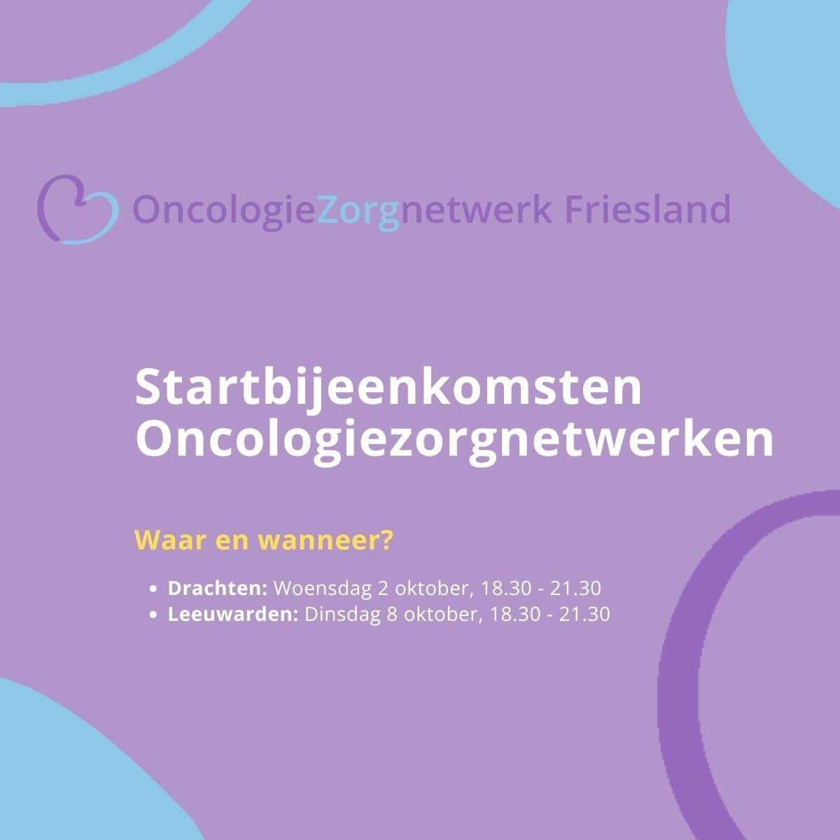 We vinden het mooi dat we ook dit netwerk kunnen helpen bij de oprichting door het te begeleiden en door samen met de initiatiefgroep van het OncologieZorgnetwerk twee startbijeenkomsten te organiseren. Kom je ook een van deze dagen?