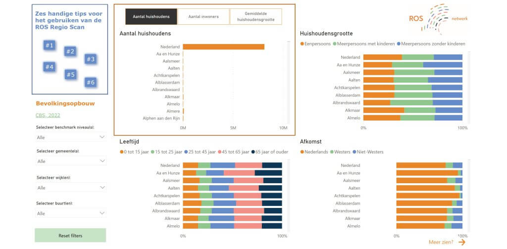 Wat de ROS Regio Scan uniek maakt, is de mogelijkheid om gemeenten, wijken én buurten met elkaar te vergelijken.