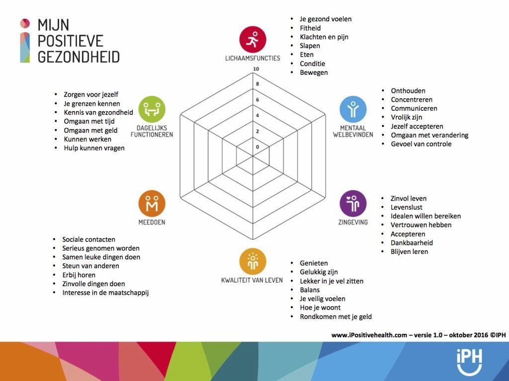 In 2015 richtte Machteld Huber het Institute for Positive Health (IPH) op. Op de website staat veel informatie over het onderwerp; zo staat onder andere het spinnenweb uitgelegd en is het ook al mogelijk deze digitaal in te (laten) vullen.
