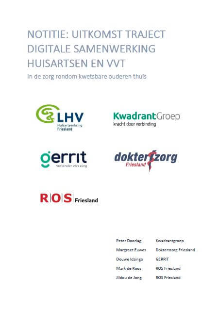 Vanaf november 2020 heeft ROS Friesland in opdracht van de Friese Huisartsen Vereniging en Friese Thuiszorg aanbieders, onderzocht hoe de digitale samenwerking tussen de huisartsenpraktijk en VVT kan worden verbeterd tijdens de zorg voor thuiswonende kwetsbare ouderen. In dit traject heeft ROS Friesland als projectleider nauw samen gewerkt met collega’s vanuit het huisarts domein, VVT domein en Wij Zijn GERRIT.